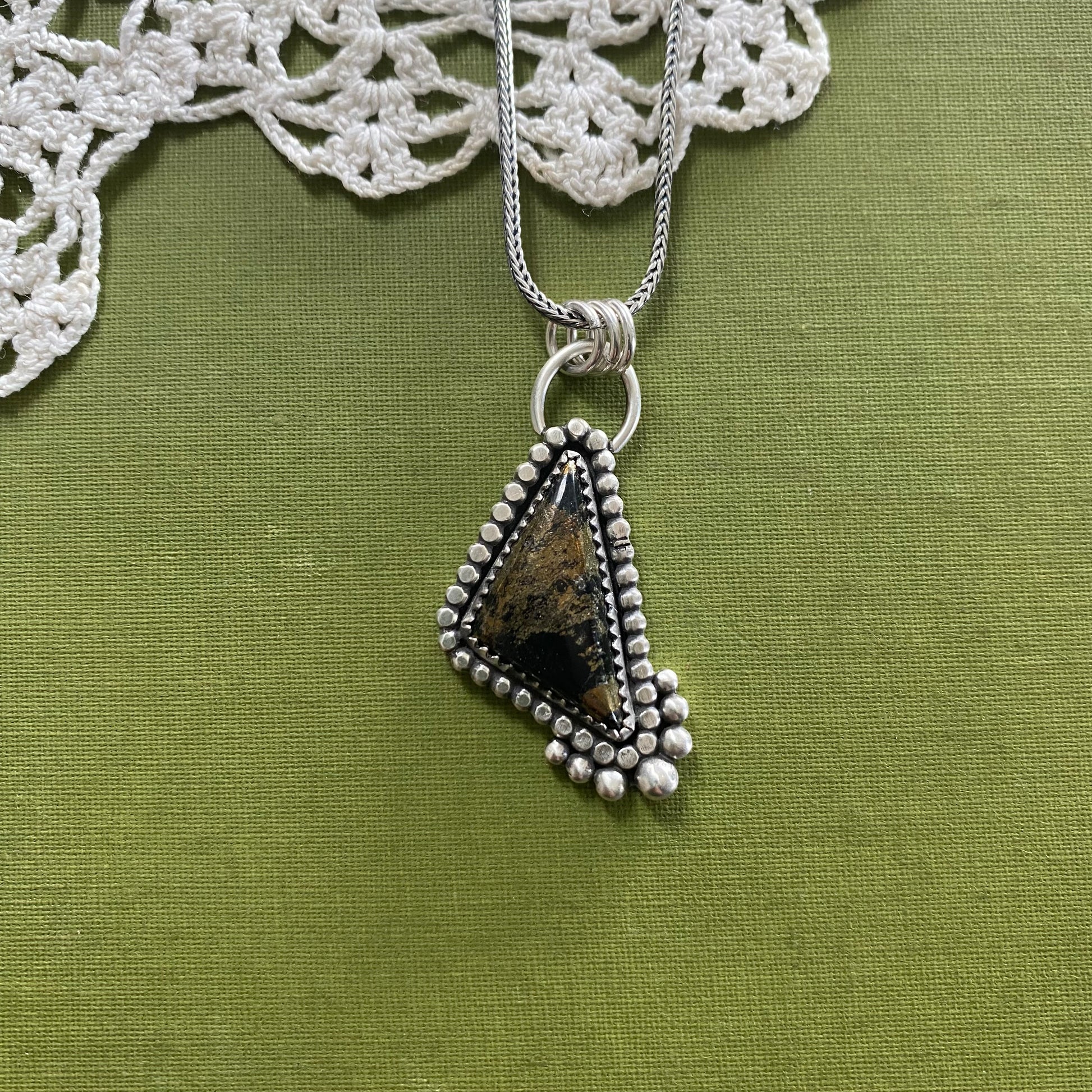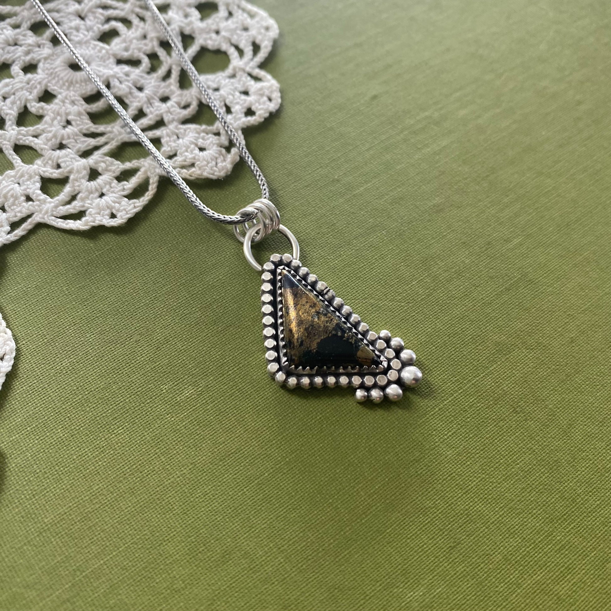 Details: Hand stamped, hand forged details, ball shot detailing, unique black and gold coloring