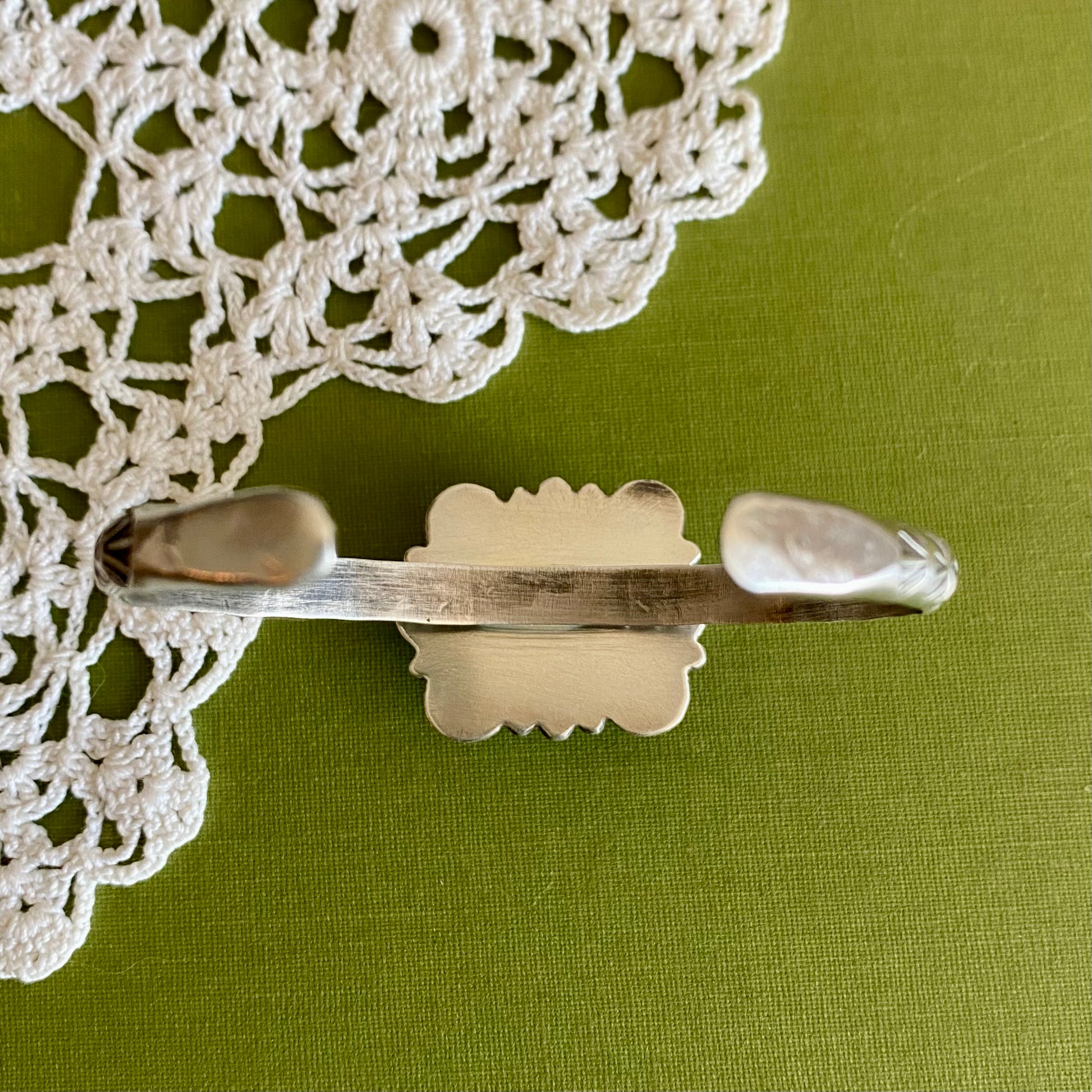 Details: Hand stamped, hand forged details, hand stamped cuff