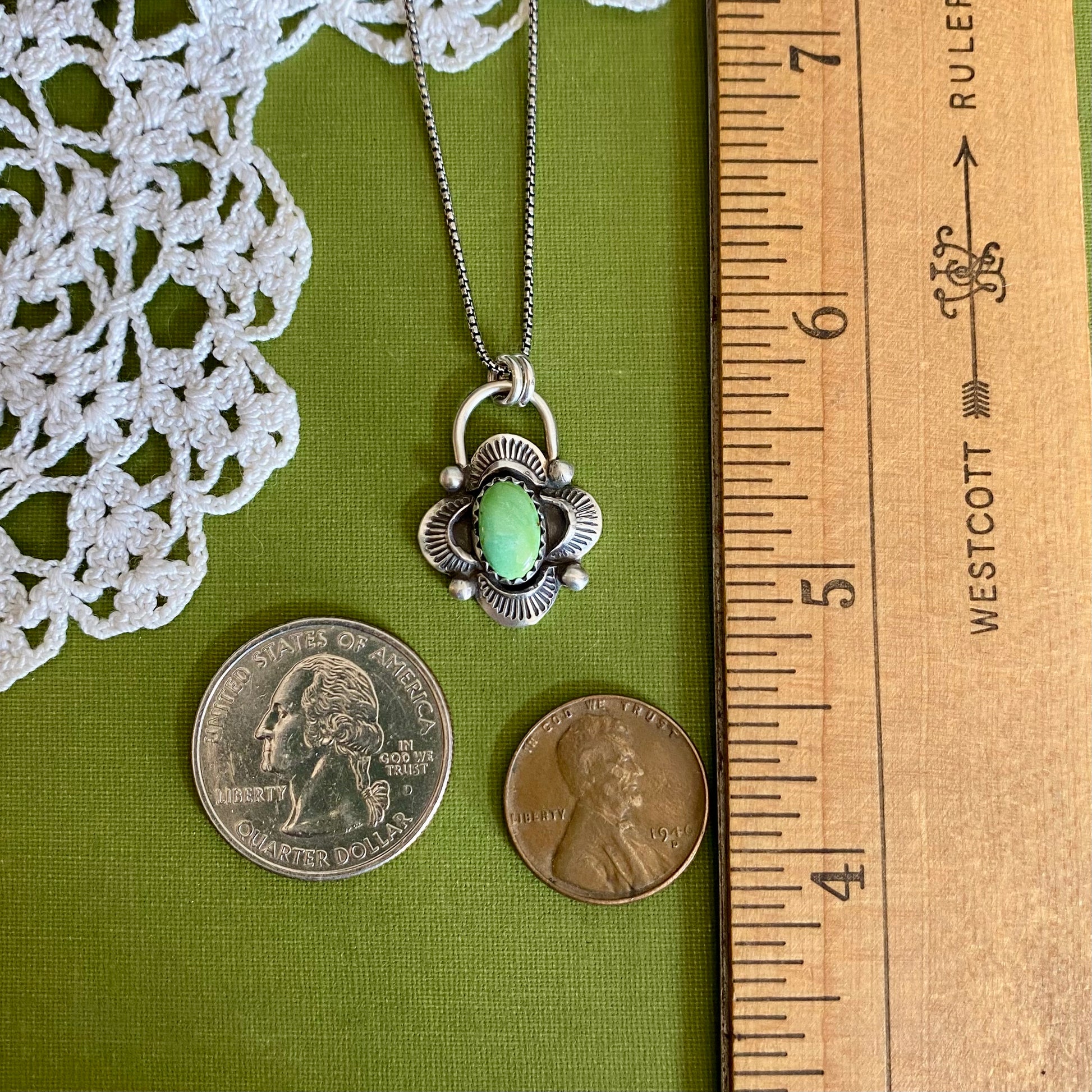 All pieces are photographed with a U.S. penny, quarter, and ruler (in inches) to help provide a clear sense of scale along side the measurements listed above.